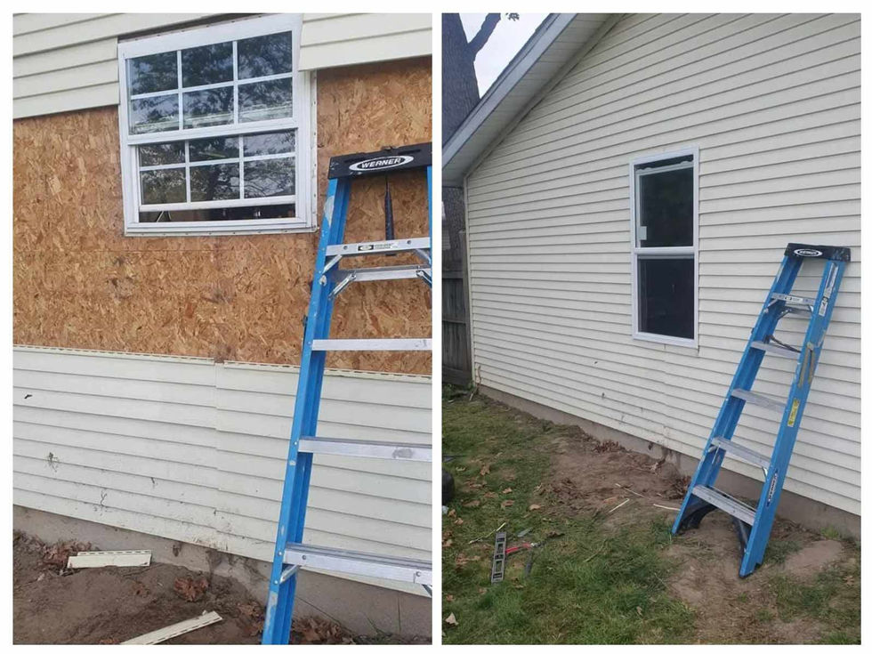 This project showcases various home improvement projects including window replacement, siding repair, bathroom renovation, kitchen renovation, framing, tiling, deck construction, and more.